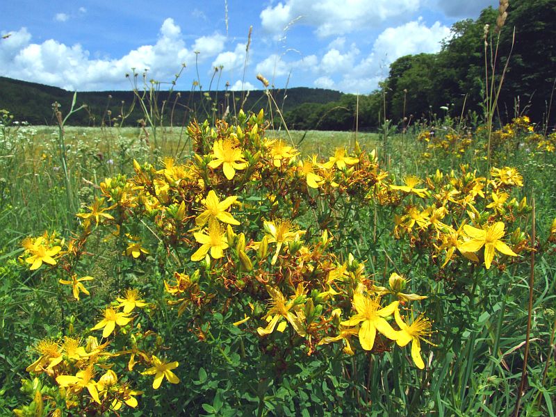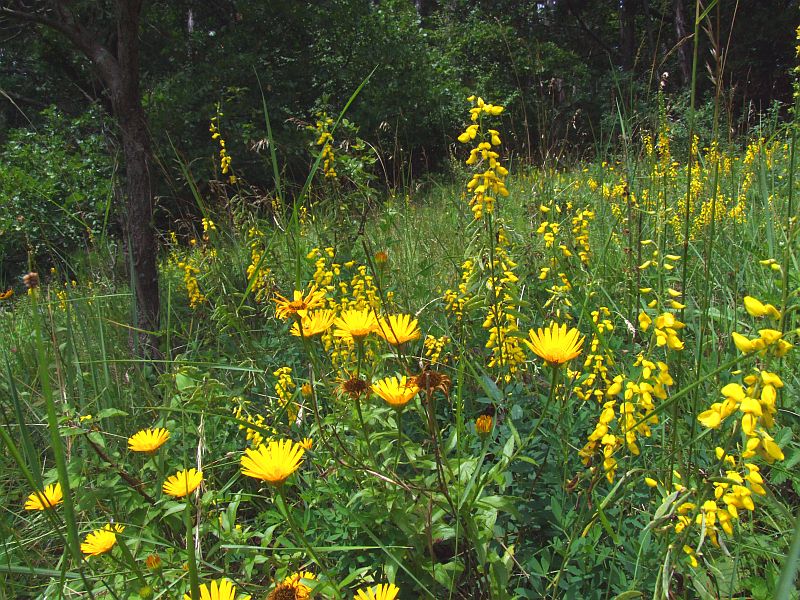 Auf einer Magerwiese in der Nähe Raublättriger Alant (Inula hirta) und Trauben - Geißklee (Cytisus nigricans)