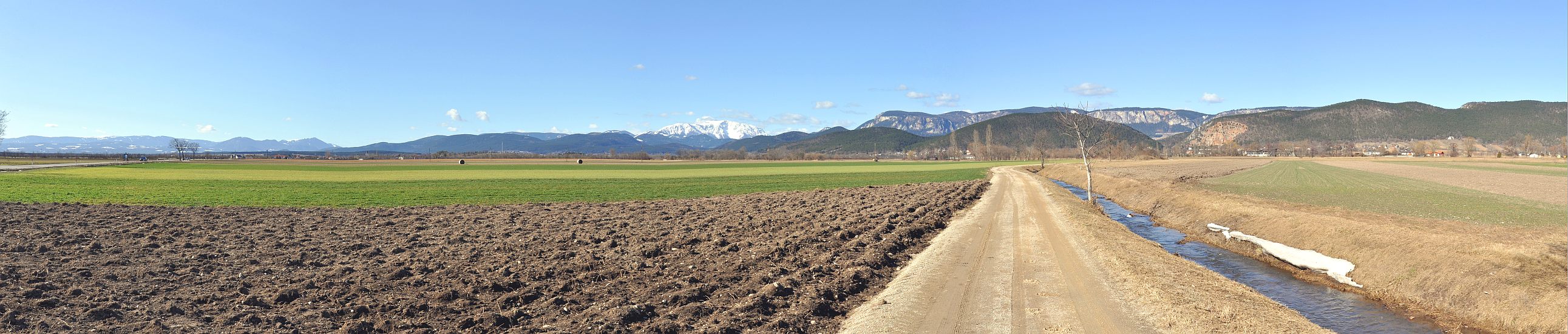 Panorama von Semmering, Schneeberg, Hoher Wand und Fischauer Berge, von unweit Weikersdorf aus.