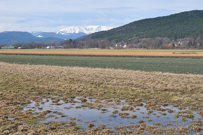 After more than a week with cold weather and repeatedly snowing, finally it grew warmer and sunny. I start for a short morning ride over fields til St. Egyden and Neusiedl.