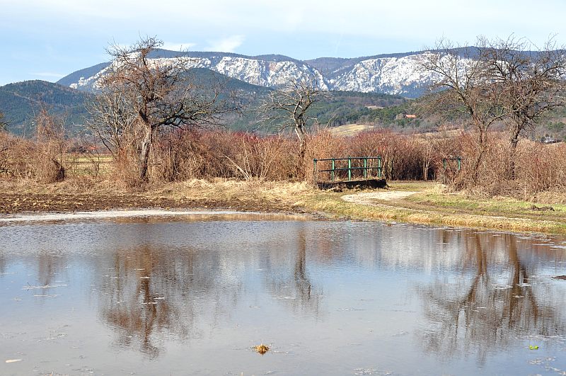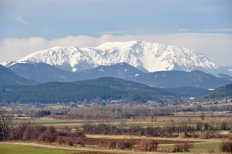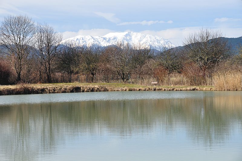 Schneeberg, in the forground trees around a fishing pond near Doerfles.