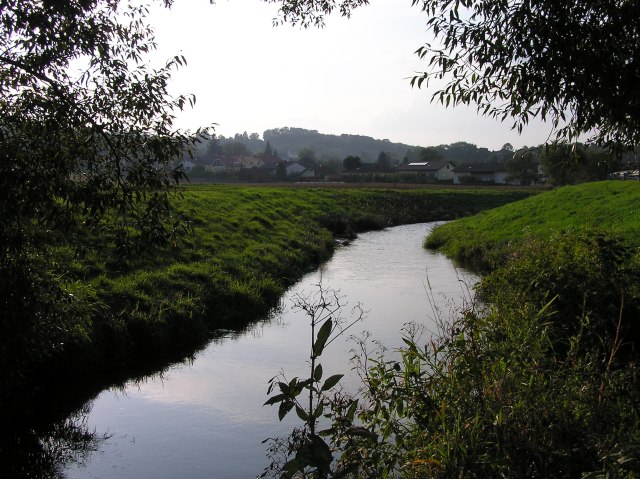 View over Neuhaus in Tauchen valley, as seen from the bank between Neuhaus and Drumling