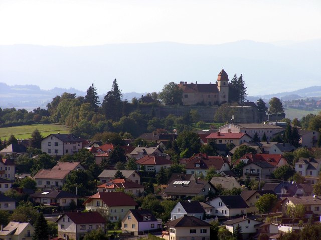Bernstein with the castle, Wechsel mountains on the horizon.