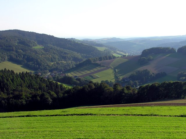 Calm and steady autumnal weather, nearly cloudless. I ride from Bad Tatzmannsdorf via Sulzriegel to Neustift, then via Grodnau and Oberhasel to Bernstein, further in direction Redlschlag, branching off via Kalteneck to Stuben. From there a narrow, but asphalted farm track leads via Harmannsdorf to Hochneukirchen. Via Hattmannsdorf, Offenegg, Aschau and Oberschuetzen I return to Bad Tatzmannsdorf , after 49,5 km and about 800 m of ascent.