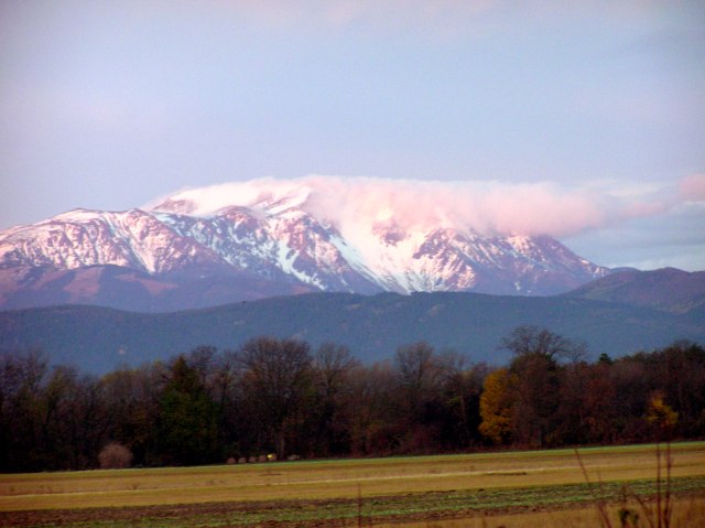In the morning, after the start of my drive to Oberwart, sunrise on Schneeberg.