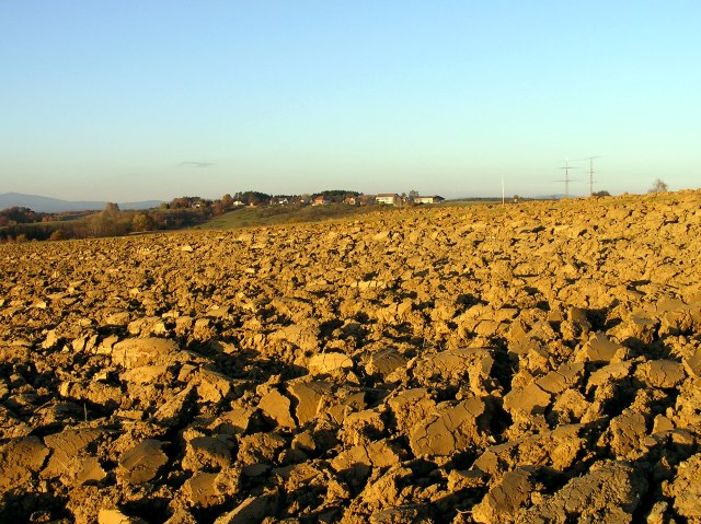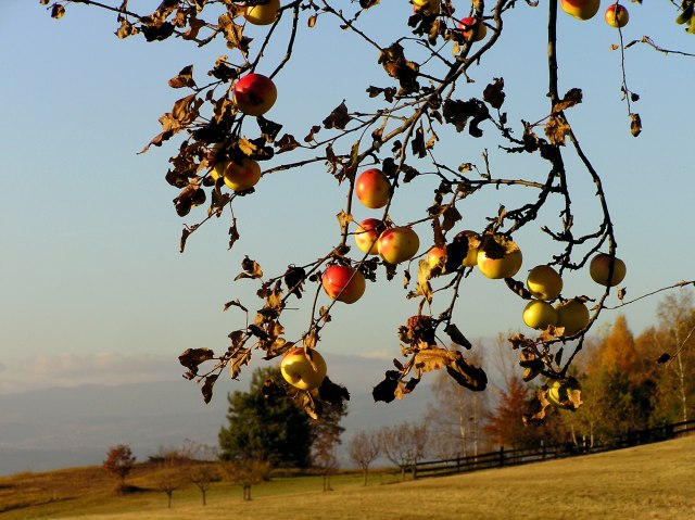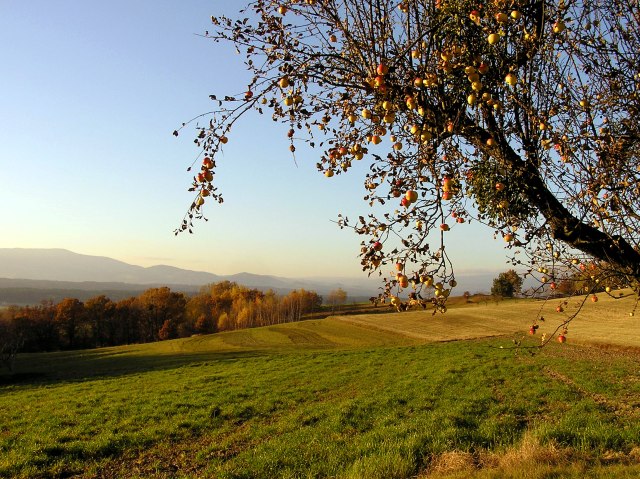Apple trees between the fields. View in direction Wechsel
