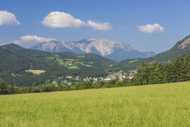 Würflach/Wolfsohl und die Hohe Wand im Hintergrund.