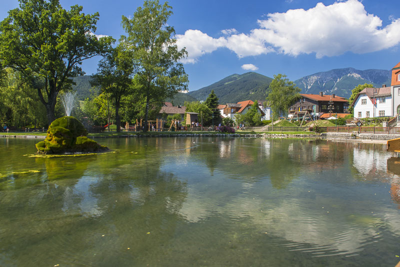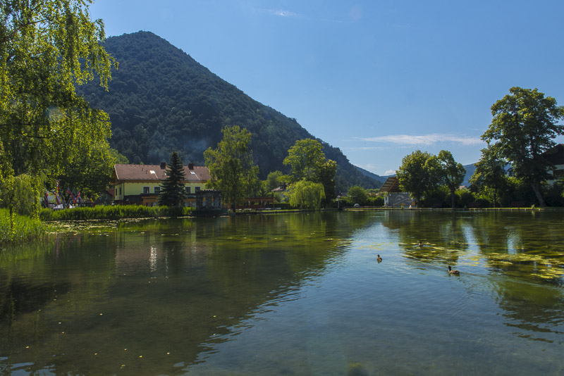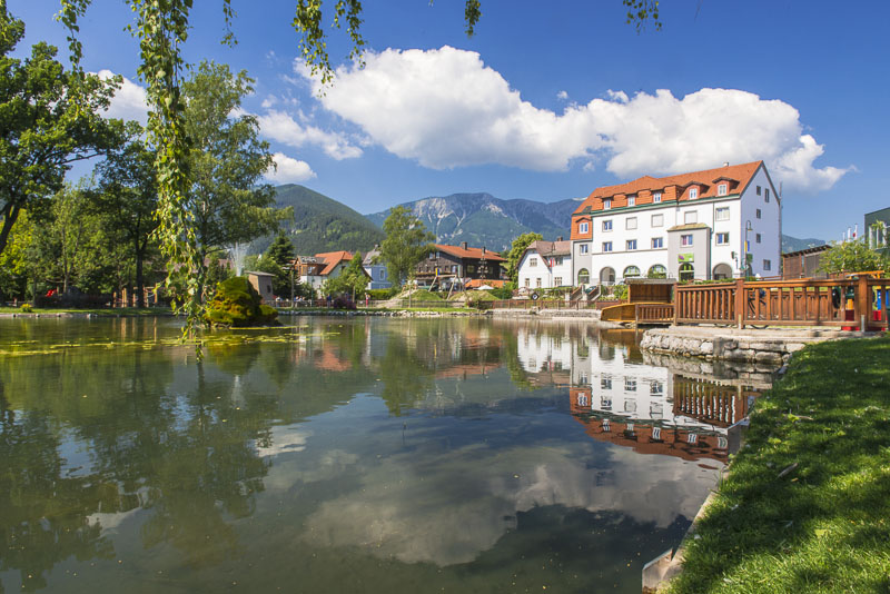 Seit an diesem Ende des Teichs die Bäume umgeschnitten wurden, sieht man im Hintergrund den Schneeberg.