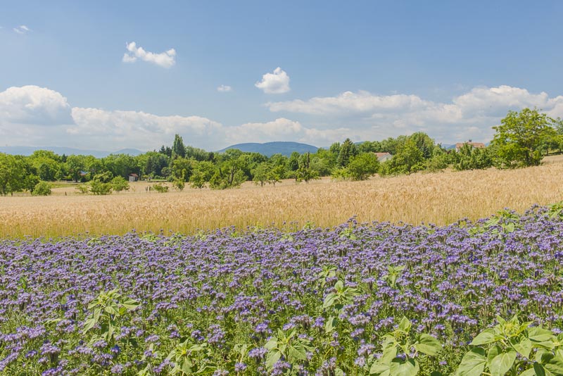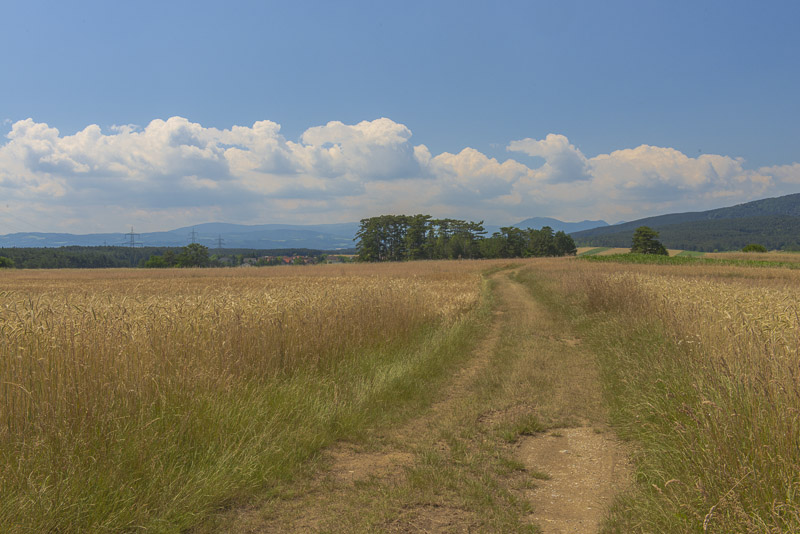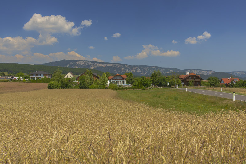 Zurück in der Ebene, knapp vor Würflach. Flimmernde Sommerhitze. Es hat jetzt 30 Grad im Schatten.