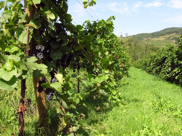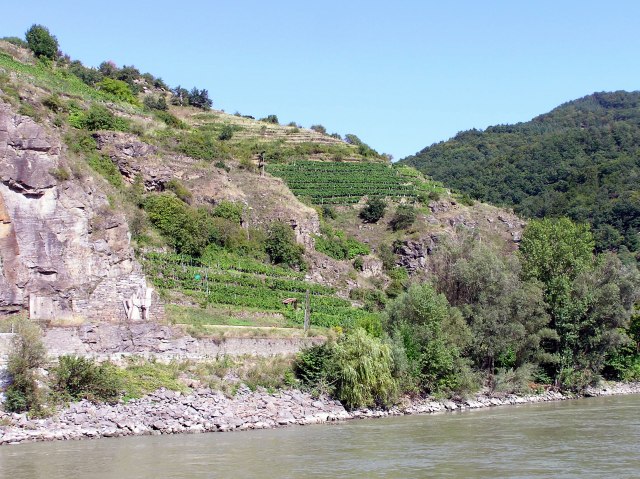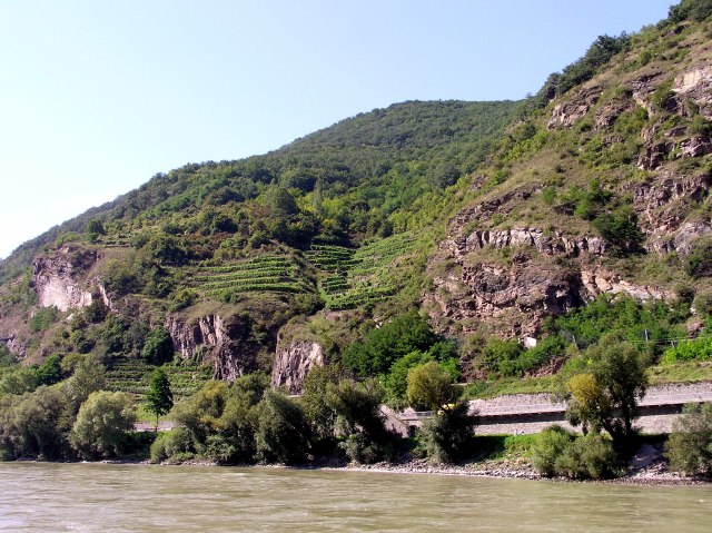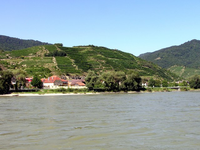 On the northern shore of the Danube many vineyards on slopes leaning to the south