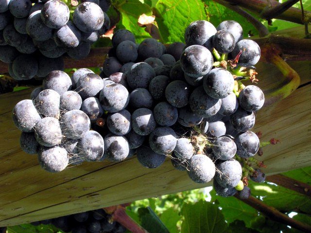 The red grapes are ripening, however this cool year they will need another month till vintage.