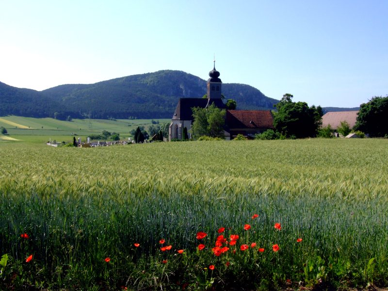 Bei Muthmannsdorf - Blick über Felder zur Hohen Wand