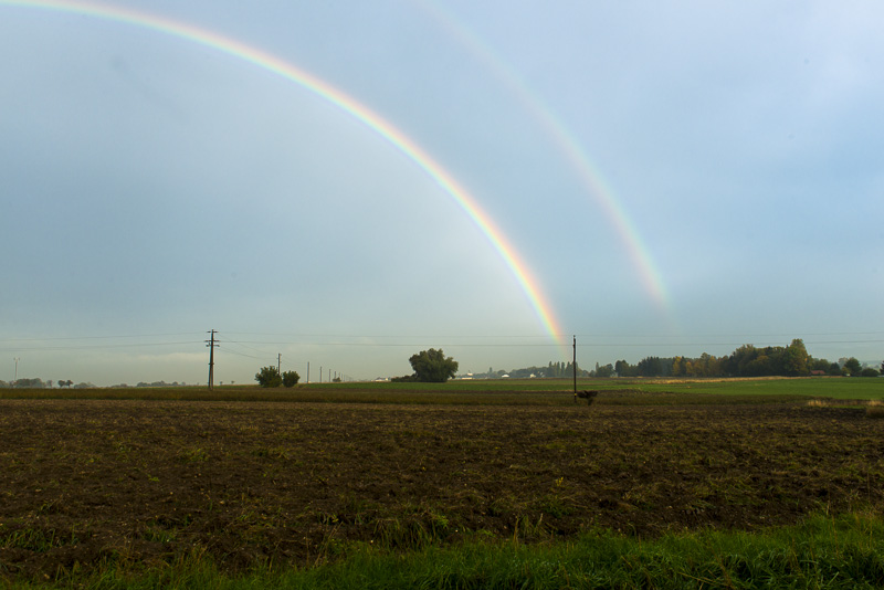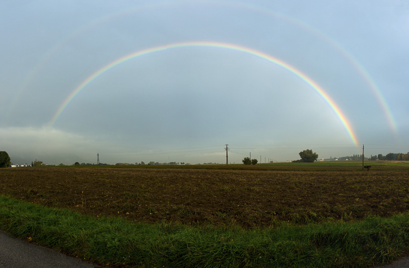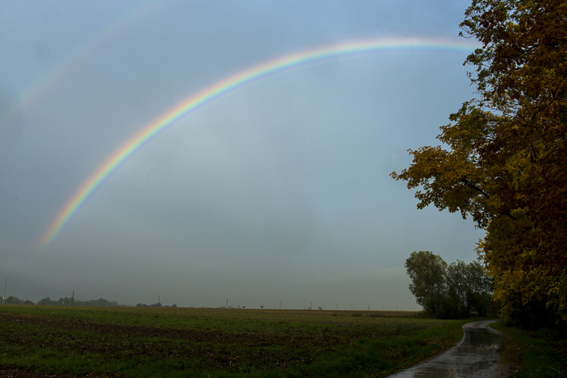 Heute am späteren Nachmittag komme ich im strömenden Regen vom Oberwart heim. Bei der Fahrt von der Autobahnabfahrt nach Winzendorf auf einmal ein "Sonnenfenster". Hinter mir aber immer noch Regen. Zu Hause hab ich nur die Kamera geschnappt und bin gleich wieder losgefahren. Das hier ist das Resultat: