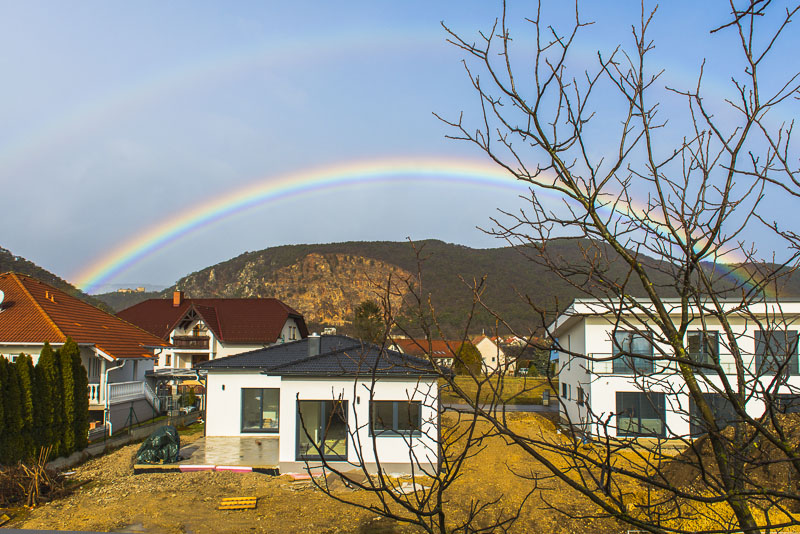 In this crazy winter, after a night and an early morning with rain, we get windy weather with plus 15 °C. The clouds open, but a last rain shower stays in the Fischau mountains, as it happens that I look out of the roof window of my bathroom and see this: