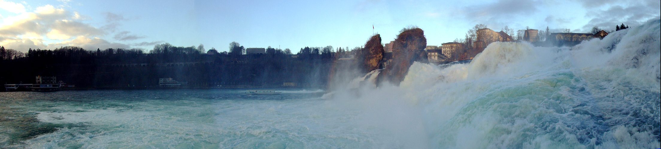 Panoramic view of the Rhine falls as seen from the platform beneath Laufen castle.