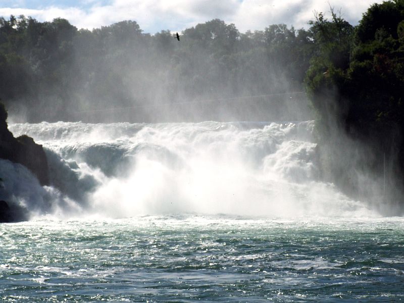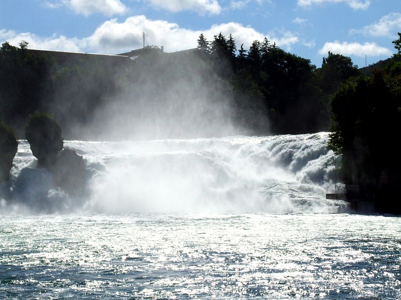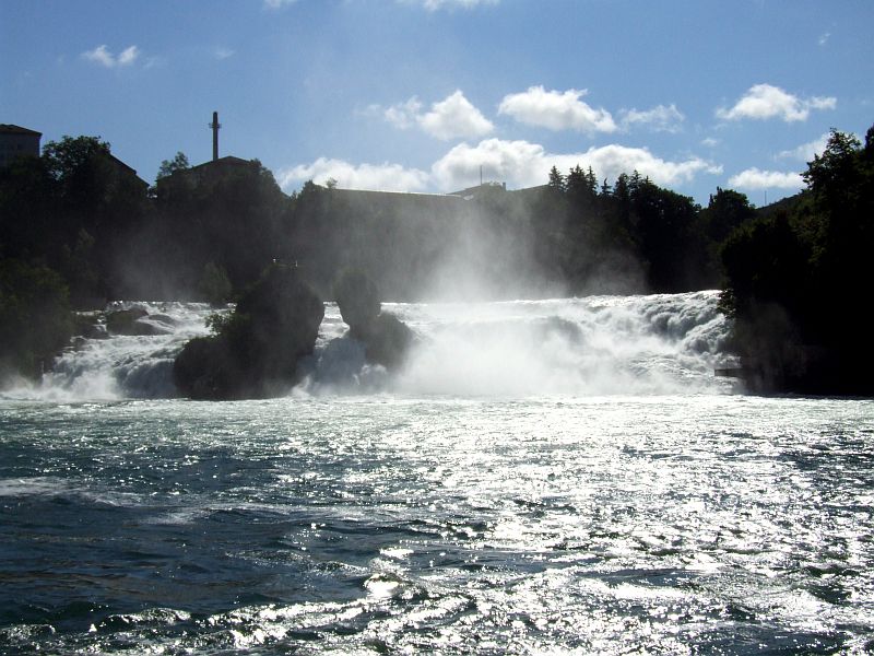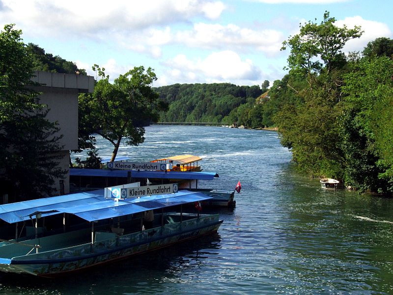 Half a day´s stay in Switzerland in a familiar matter in Neuhausen at the Rhine falls. Just 15 minutes of spare time for a very short visit of the falls, which have much more water than last time (compare the water left from the two rocks).