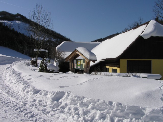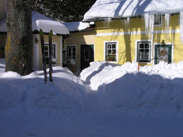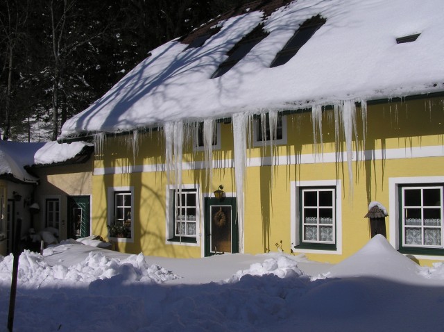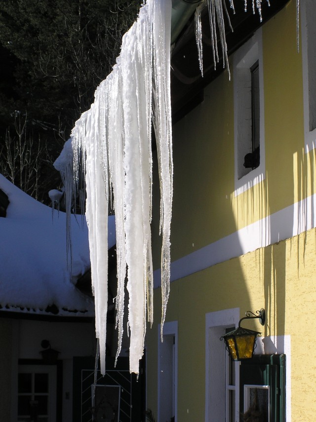 Visiting friends in Rohr im Gebirge: Snow height 1 m, huge icicles after several days of sunshine