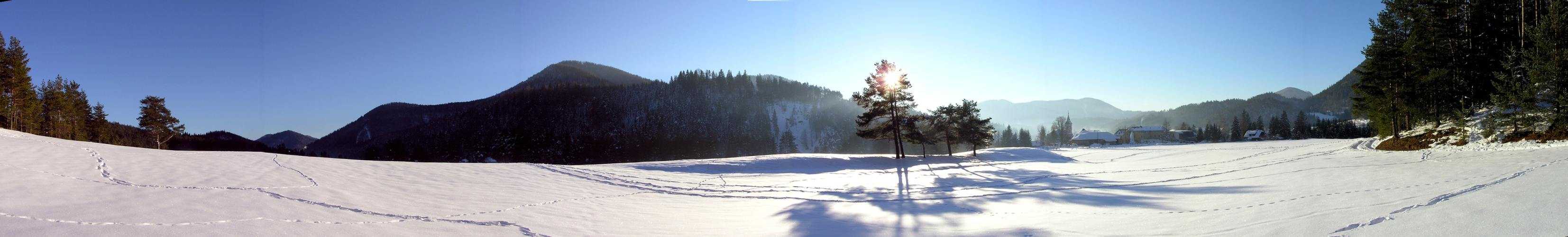 Panorama der Winterlandschaft oberhalb von Rohr im Gebirge.