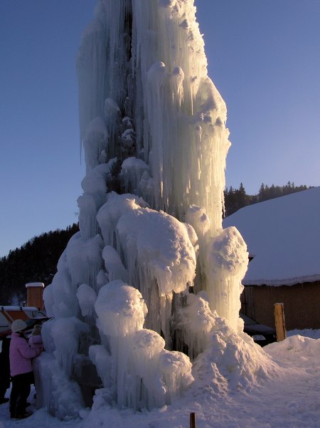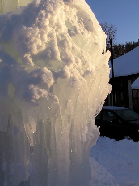 Behind the barn where the Advent market takes place, the local firebrigade has mounted a tree and sprayed so much water on it that it turned to an ice sculpture