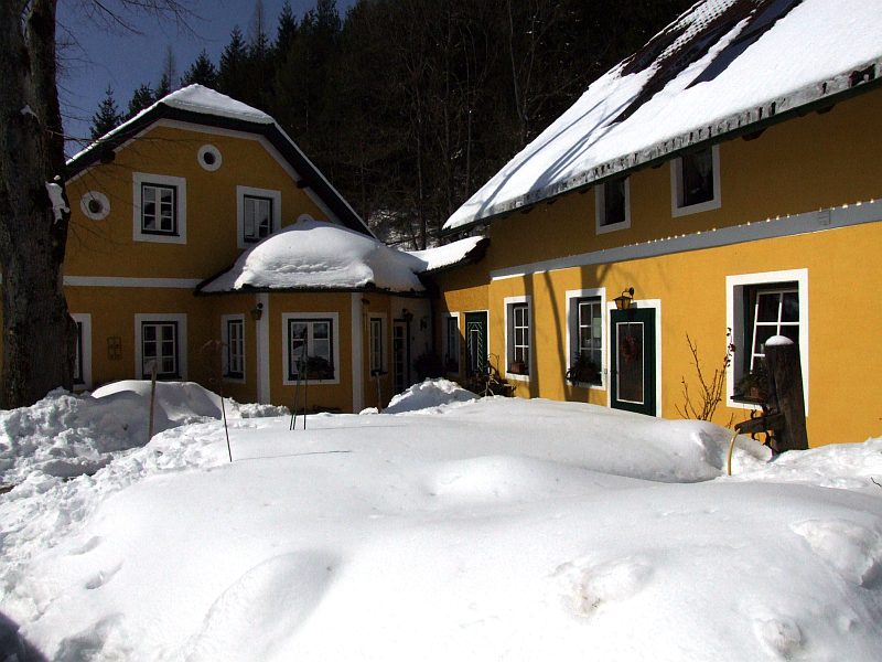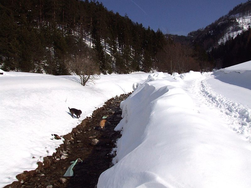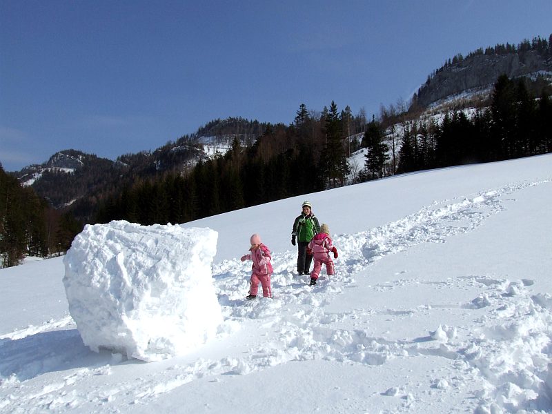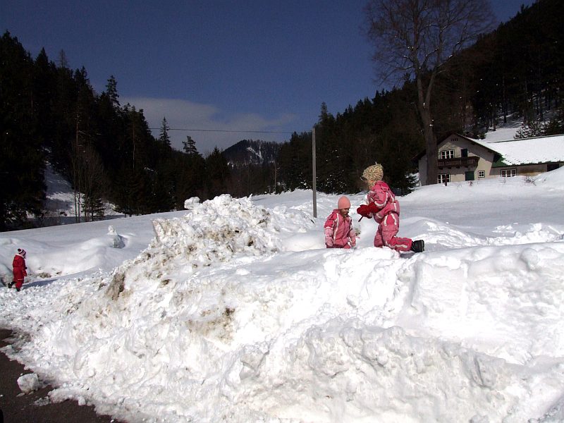 Itīs time to meet our friends in Rohr im Gebirge. Therre it has snowed so much during the past 6 weeks that there are still lots of snow, even after many days of thaw. (at home, nearly all of the recent snow has disappeared). We only go out for a short while to let the kids play in the snow.