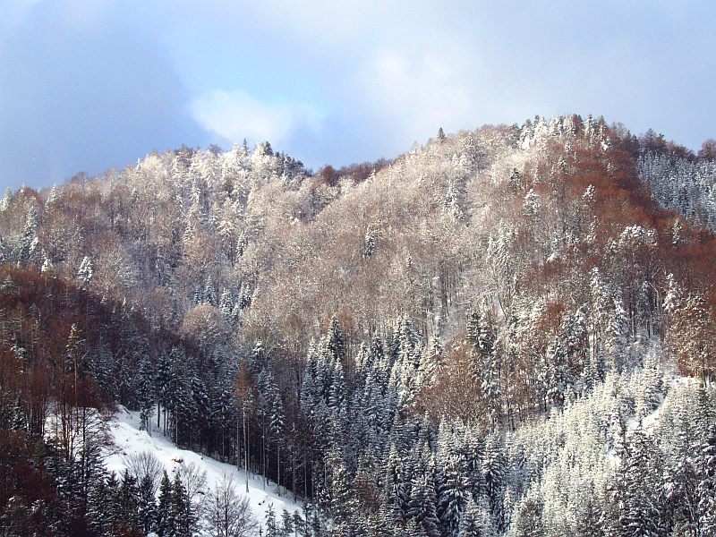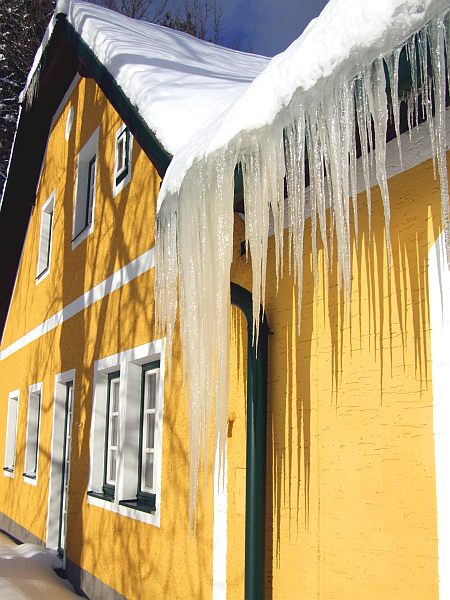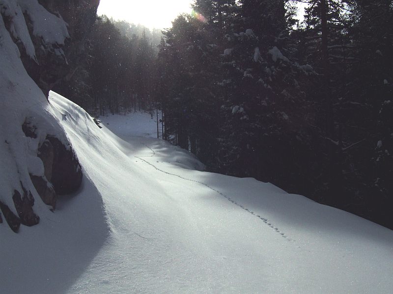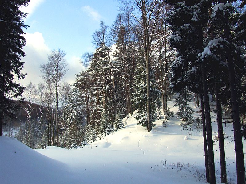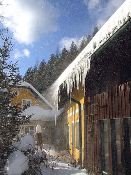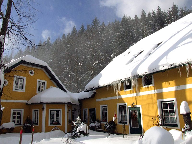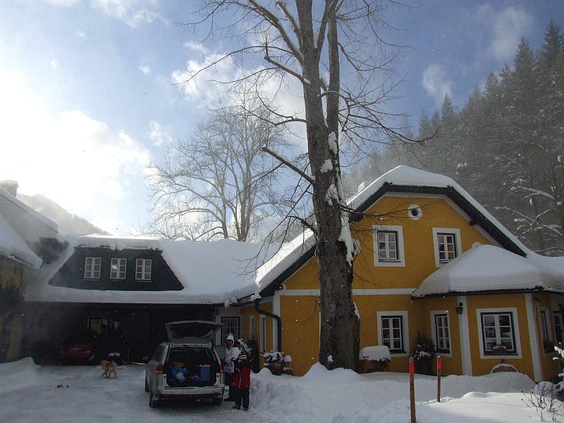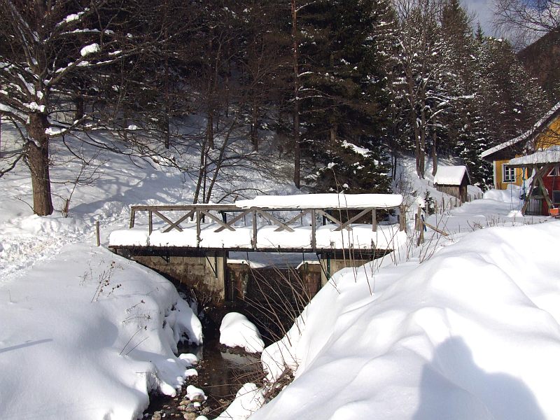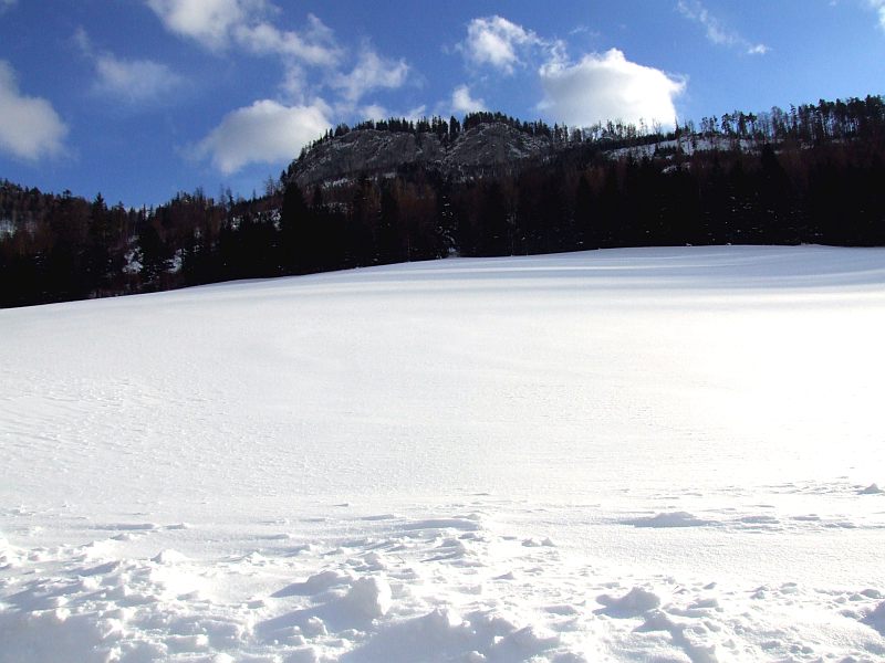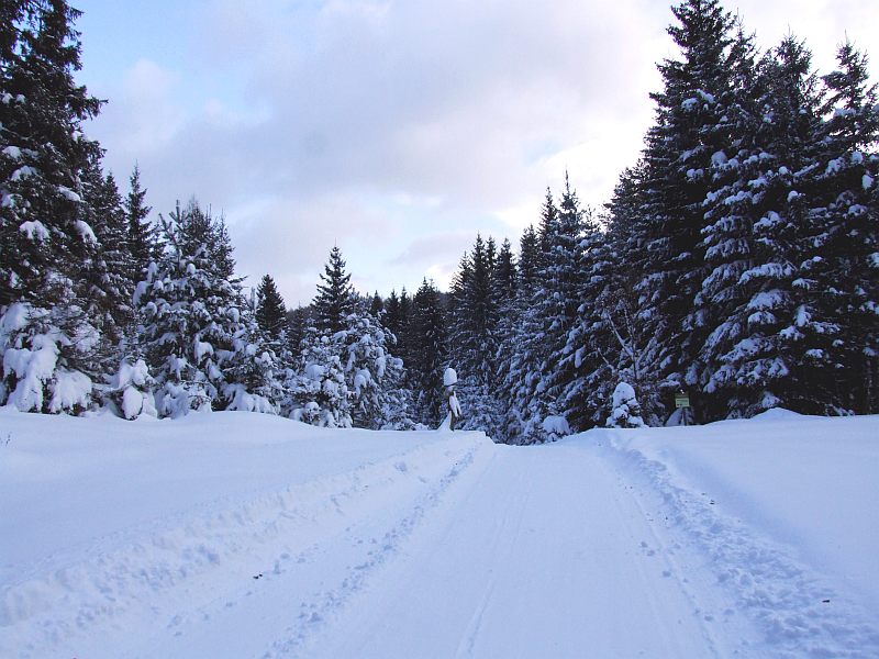 Es sind Semesterferien, und die Kinder besuchen einen Schikurs bei den Furtnerliften, 5 km außerhalb von Rohr im Gebirge. Es gibt dort zwei sehr nette Schlepplifte mit auch recht schönen Abfahrten, aber den ganzen Tag nur zwei oder drei Hänge befahren ist auch nur mäßig attraktiv. Ich habe daher auch die Langlaufschi eingepackt und mache mich trotz 15 cm pulverigen Neuschnees mit den kürzeren Adventure - Schi auf den Weg, die Loipe nach Rohr im Gebirge zu erkunden.