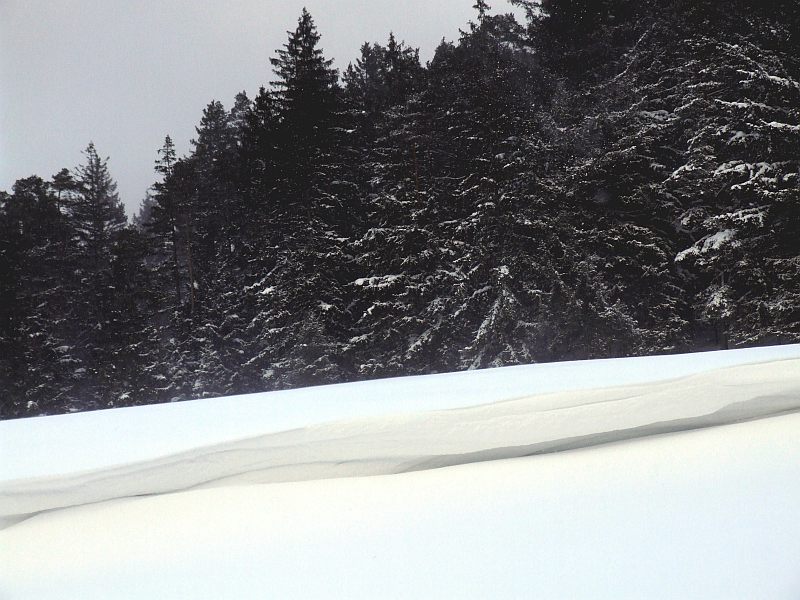 ... und wendet sich dann hinunter zum Talschluss, wo eine Verbindungsloipe zu den Rohrer Loipen startet. Diese Verbindungsloipe ist dann bereits präpariert.