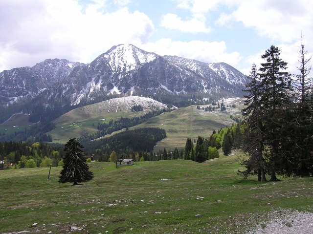 Gamsfeld (left) and Braunedlkogel (right) on the ascent to Postalm