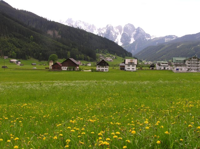 Gosau with the Gosau ridge. Due to the bad brakes I decided to walk the 2 kilometers down Pass Gschuett