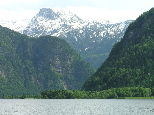 Lake Hallstatt, view in southern direction to the Dachstein massif