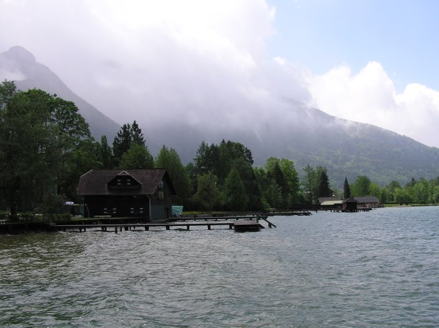 22.und 23.5. - Dauerregen. In Strobl ist es jetzt sehr windig, Neuschnee weit herunter. Blick Richtung Zwölferhorn und St. Gilgen
