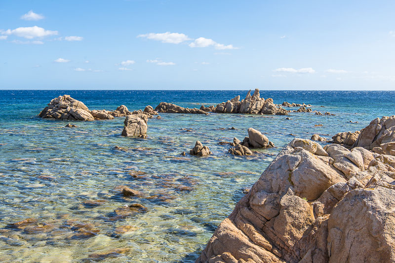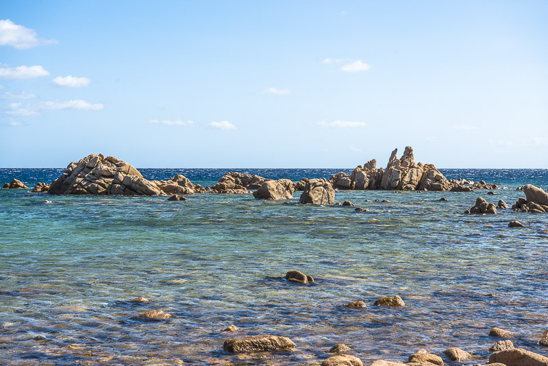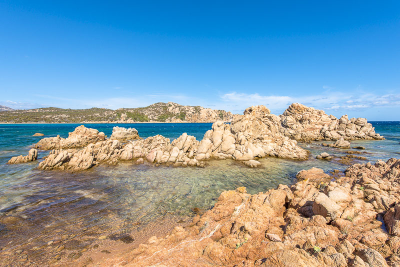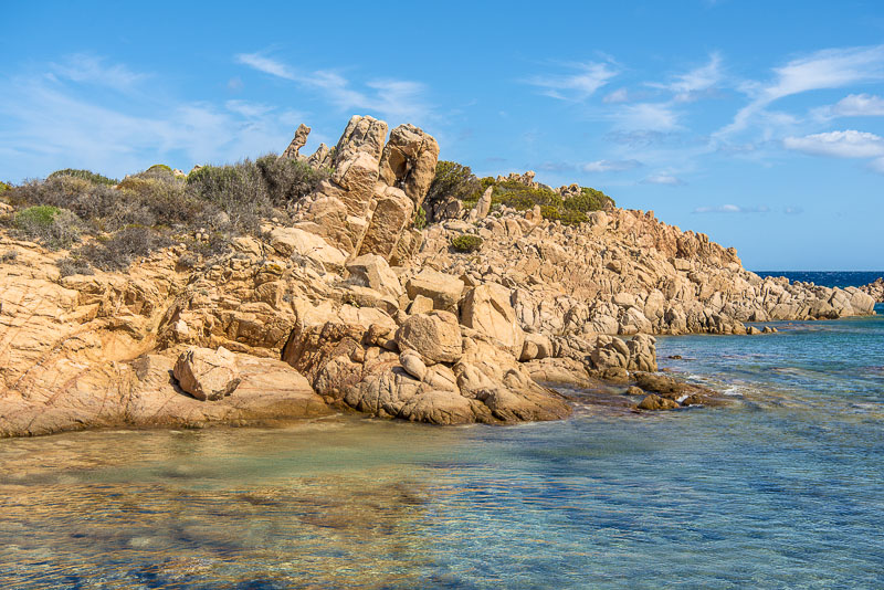 Die Felsküste der Costa Smeralda ist einzigartig: die Steine sind aus einem gelblichen Granit, was ganz eigene Formen hervorruft, gleichzeitig gibt der gelbe Meeresboden dem Wasser eine wunderschöne türkisblaue Farbe.