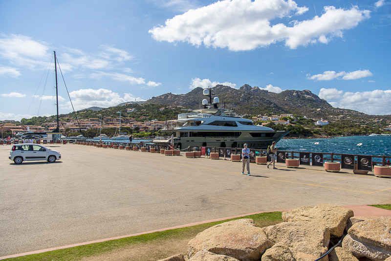 Wir sind nach Porto Cervo gefahren - dieser erst in den Sechzigerjahren von Aga Khan gegründete Ort ist das Zentrum von "Reich und Schön" im Mittelmeer. Dementsprechend die Größe der Jachten, die hier liegen.