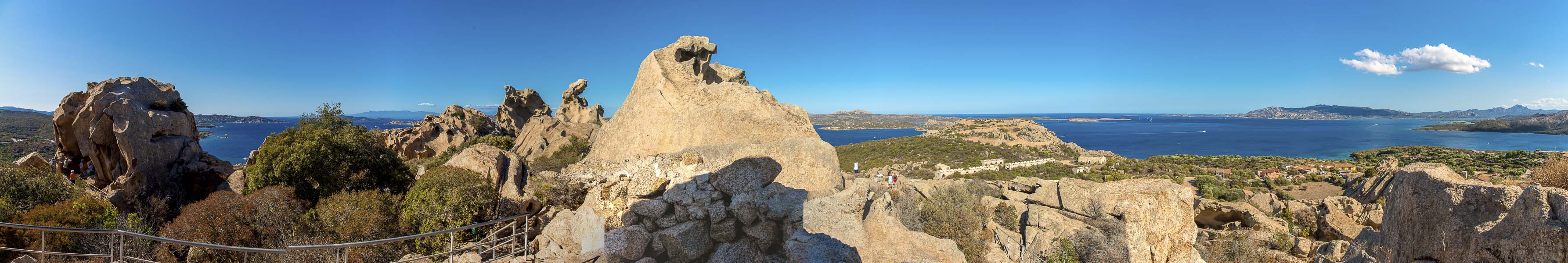 270 Grad Panoramabild vom Capo d´´ Orso, von Westen über Norden und Osten bis Süden. Ganz links der "Bärenfelsen", der aber aus dieser Perspektive nicht wie ein Bär aussieht.