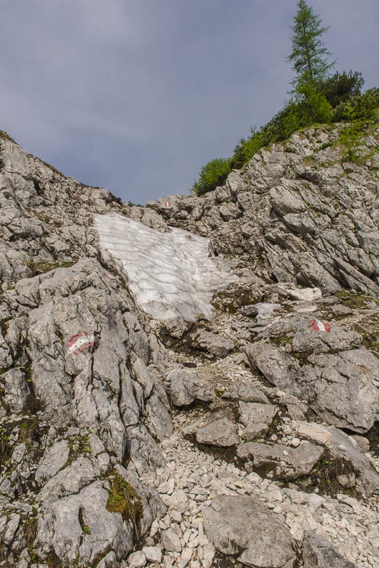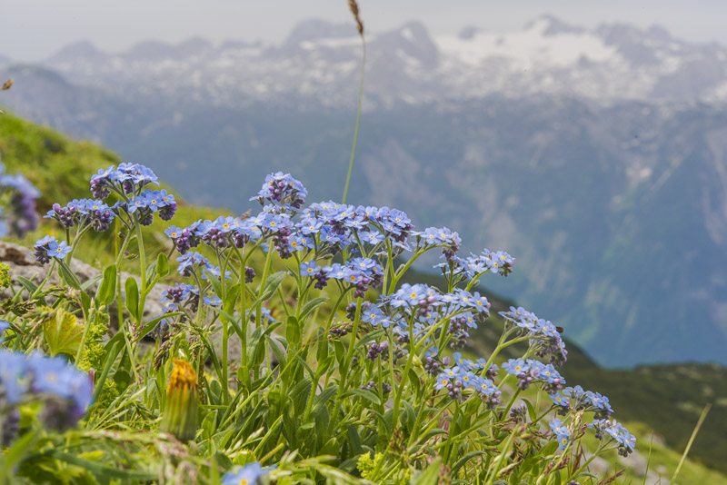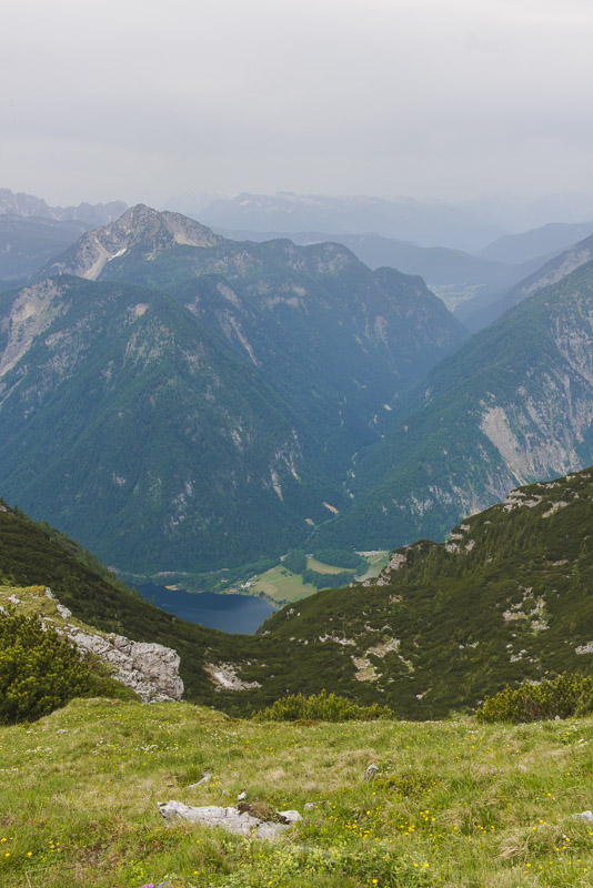Ich mache mich also jetzt an den mühsamen Abstieg - 1.100 m Höhendifferenz den Berghang (der in der Sonne liegt!) hinunter nach Obertraun.