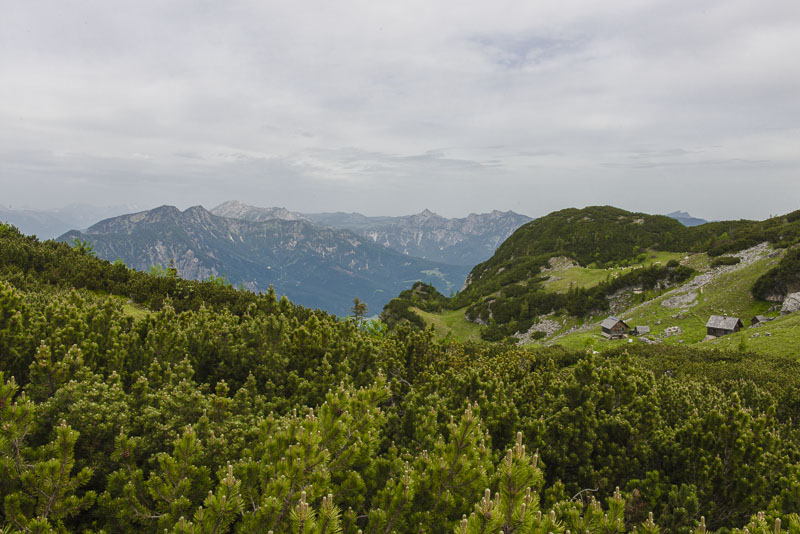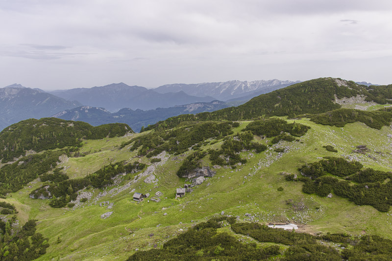 Sarsteinalm. Ganz links am Horizont der Schafberg, den wir auf unserer Fahrt hierher gesehen haben.
