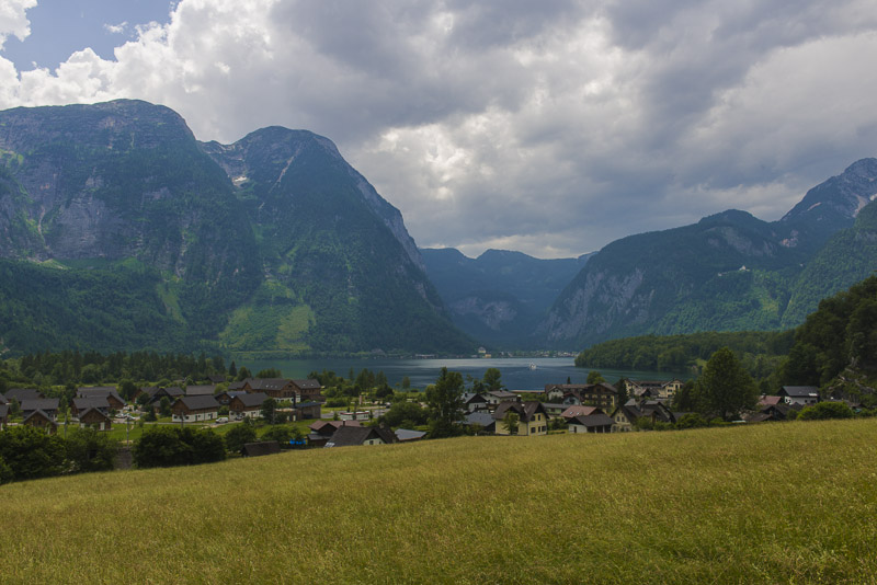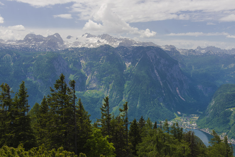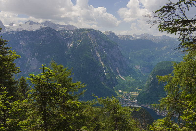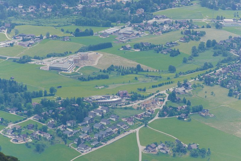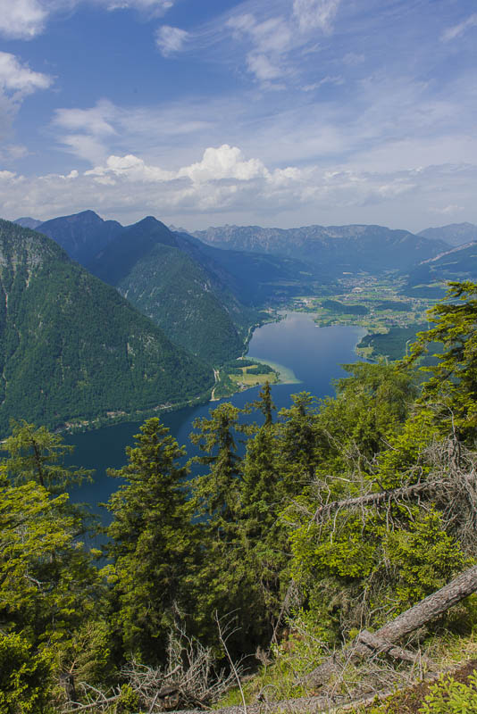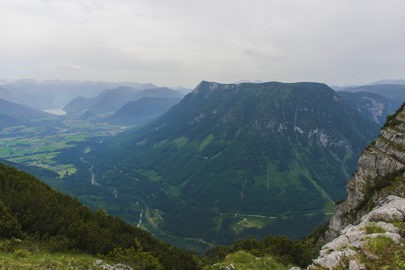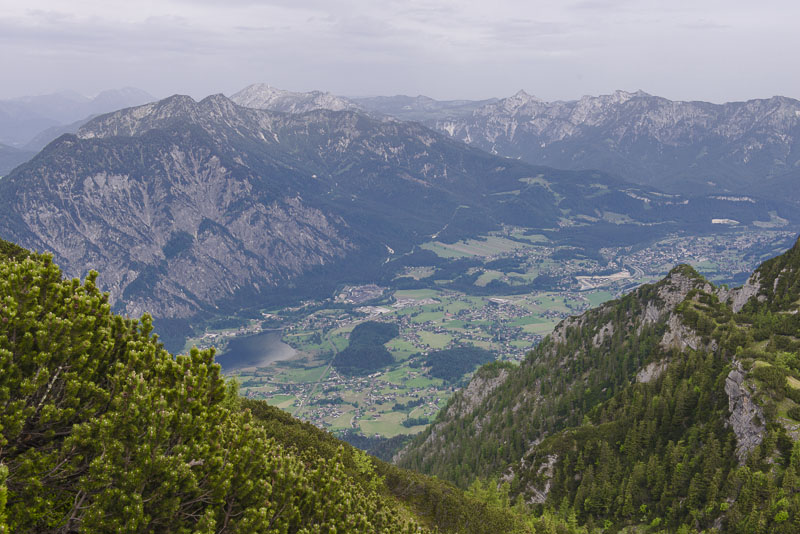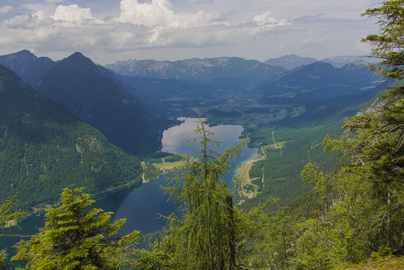 Blick hinunter auf Bad Goisern. Links das untere Ende des Hallstättersees.
