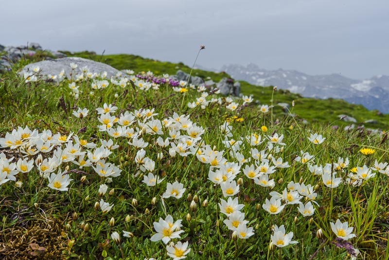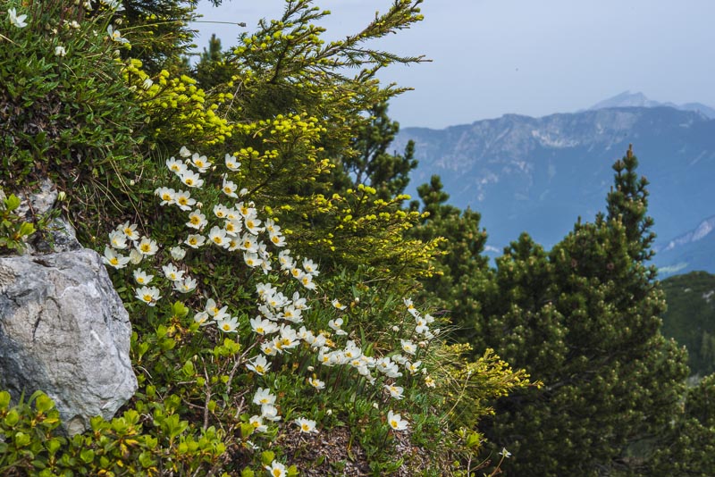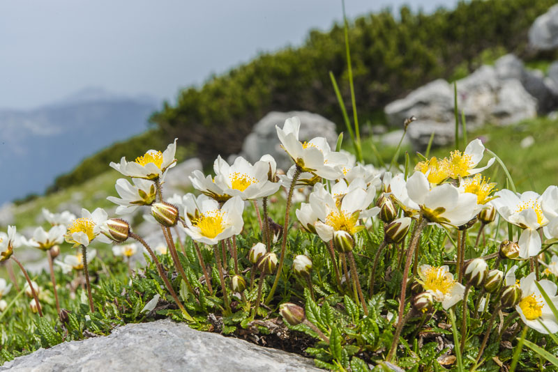 Silberwurz (Dryas octopetala) wächst hier in großen Polstern.
