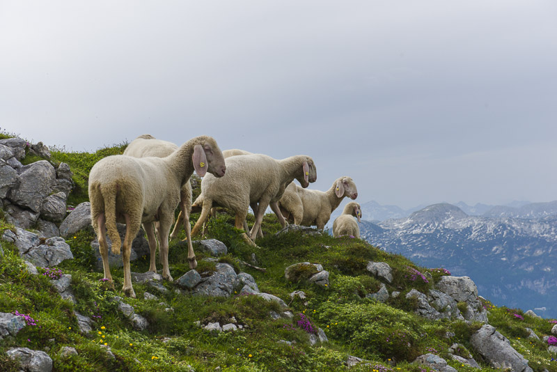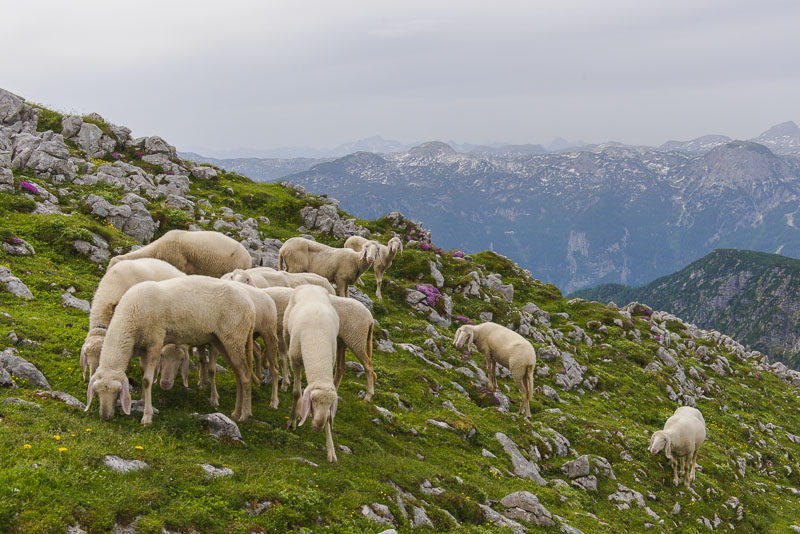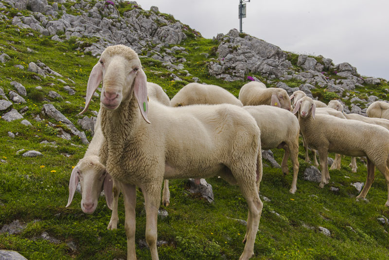Nahe dem Gipfel weidet auch eine Schafherde.