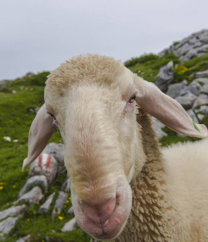Dieses Tier lässt sich von mir streicheln und ist so zutraulich, dass es mir nachläuft. Um es nicht von der Herde zu entfernen, muss ich es zurück schubsen und ihm klarmachen, dass es besser ist, heroben zu bleiben.