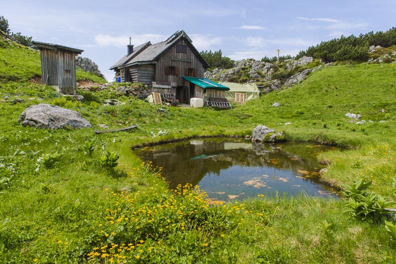 Von der Bank vor der Hütte aus hat man diesen wunderbaren Blick auf den Dachstein.
