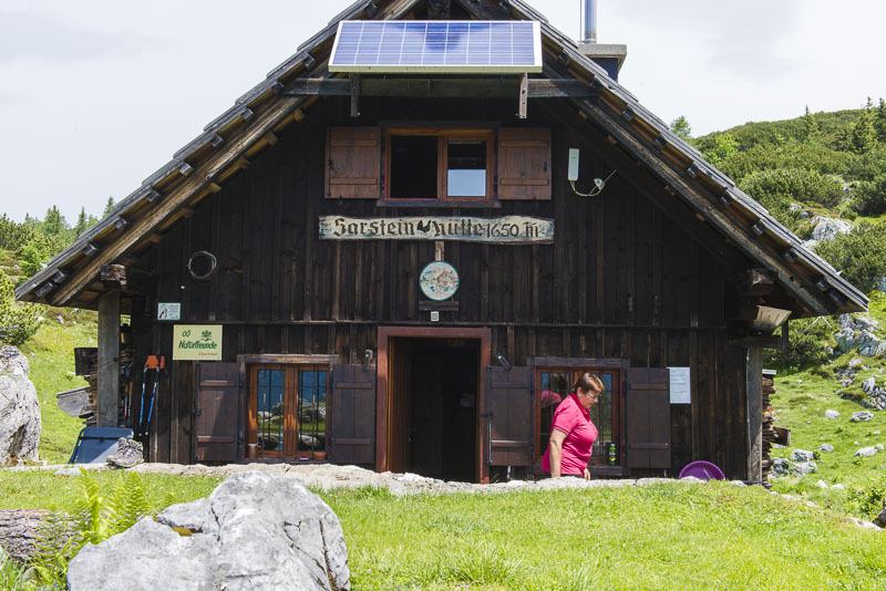 ... bei der Sarsteinhütte, die heute, am Samstag, gerade bewirtschaftet ist. Würstel und zwei Getränke ist genau das, was ich jetzt brauche.