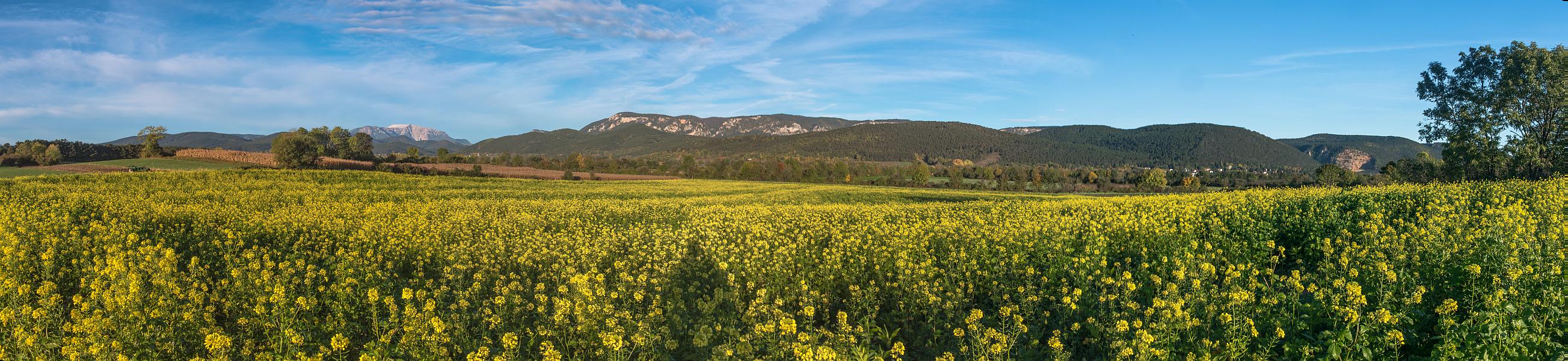 Panoramaaufnahme mit Schneeberg und Hoher Wand, ganz rechts der Winzendorfer Steinbruch.