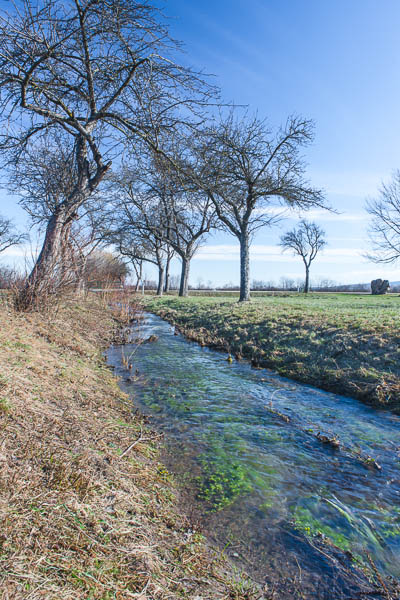 Der Hochwasser führende Moribach unweit von Saubersdorf