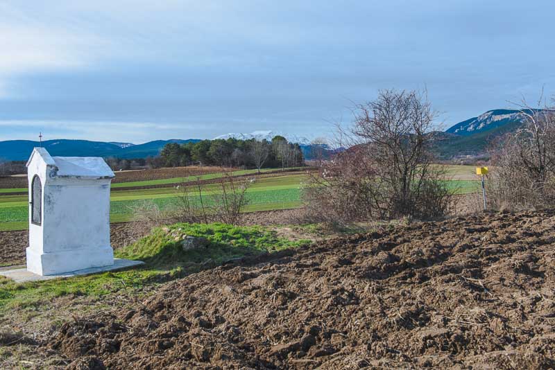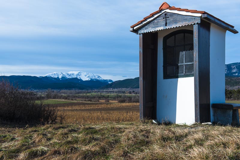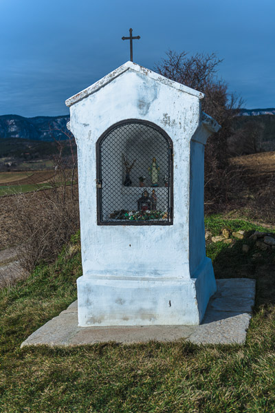 Marterl am Hügel nahe Saubersdorf. Jetzt muss ich mal einen Einheimischen fragen, ob der Hügel mit dem Handymast und der Kapelle auch einen Namen hat ... in der Karte ist jedenfalls keiner eingezeichnet.