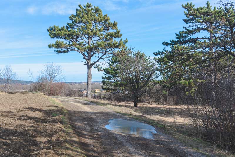 Nach zwei Wochen Kälte und Frost hat sich nun in wenigen Tagen die Schneedecke bei unglaublichen Temperaturen von bis zu 15 °C (gestern abend!), Regen und Föhnsturm aufgelöst. Heute geht zwar ganz schön stark der Wind, aber es scheint die Sonne, und so muss ich wieder einmal hinaus. Ich starte unweit von Weikersdorf, exakt an der Stelle, an der ich auch am 6.12.2012 gestartet bin. Die Route war diesmal ein klein wenig kürzer, aber sehr ähnlich zu damals.