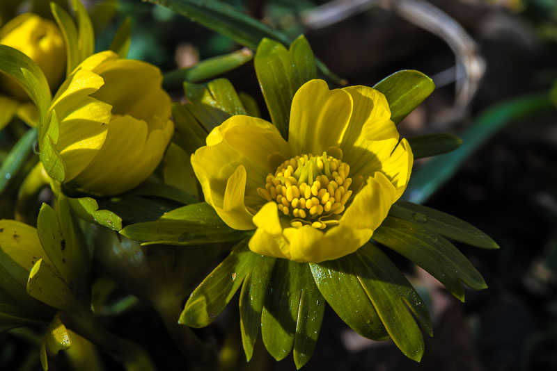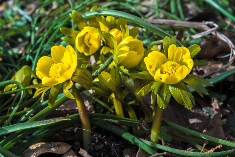 Zurück in meinem Garten: unglaublich, aber wahr: wo noch vor drei Tagen ein hoher Schneehaufen neben dem Weg zu meiner Haustür war, blühen jetzt - am 31. Jänner - die Winteranemonen.