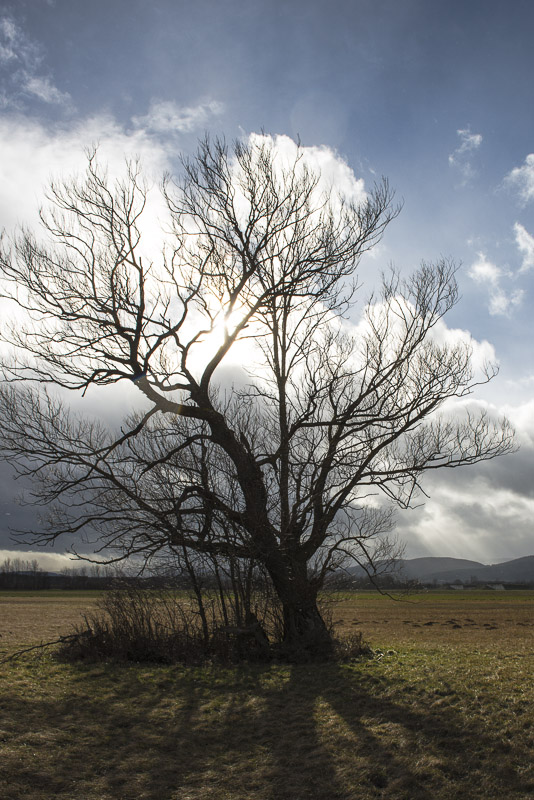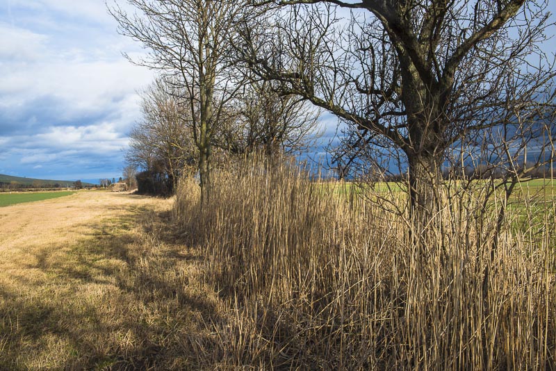20.1.: It is bright, but high clouds inhibit full sunshine. Bad weather is coming. Nearly dayly, I see deer in the fields now.