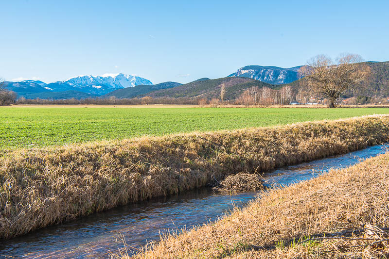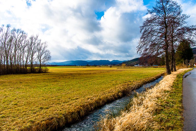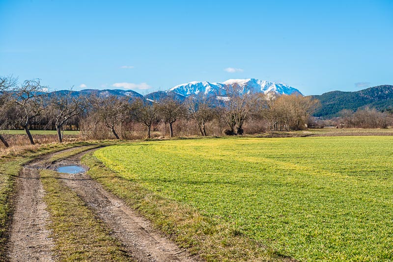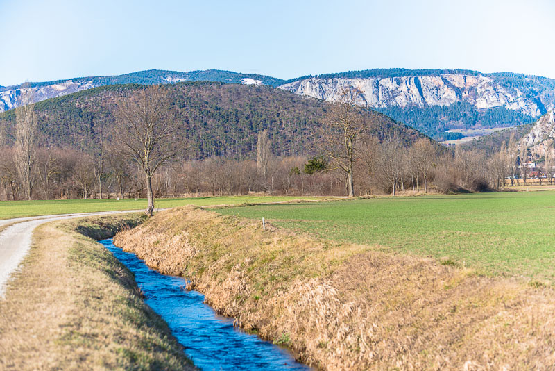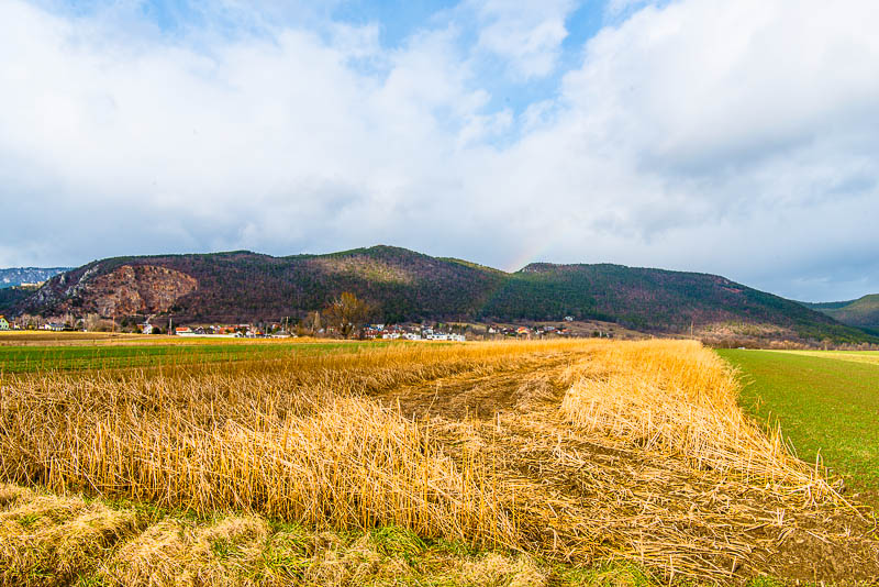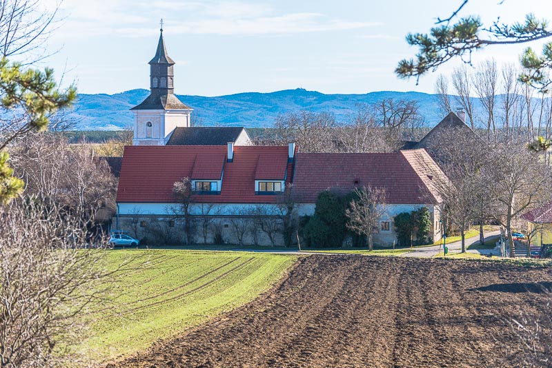 After a rany evening the sky cleared over night, and it gets unusual warm. I have to post a parcel in Weikersdorf, so I start directly from there and walk to Saubersdorf and back.