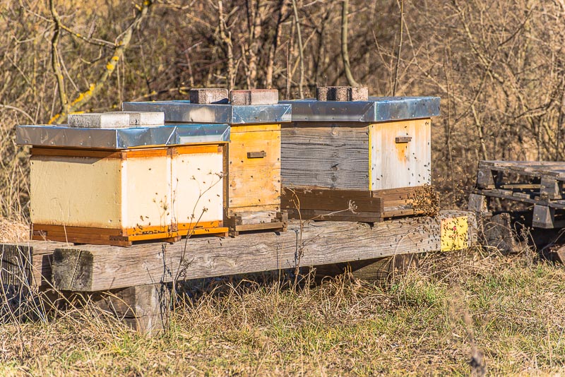 In the bee hobves, the bees are out, as the temperature is near 20 °C. Regrettably, they don´t find anything to eat today, maybe except a few hazelnut catkins. But I see them drinking from the puddles at the road. I´d suspect the climate change also does harm to the bees. Usually, they shouldn´t fly out end January.