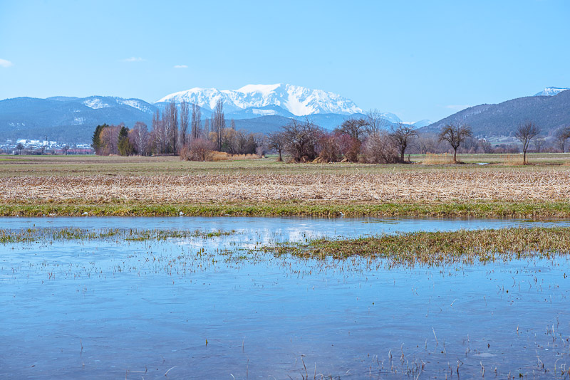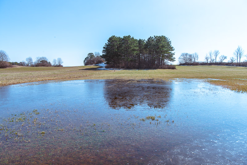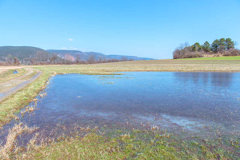 Large puddles on the fields in places.