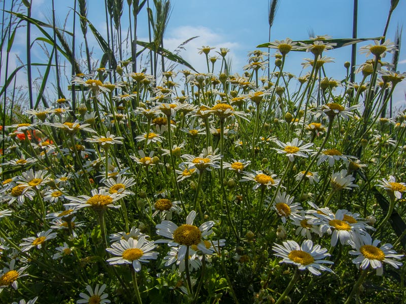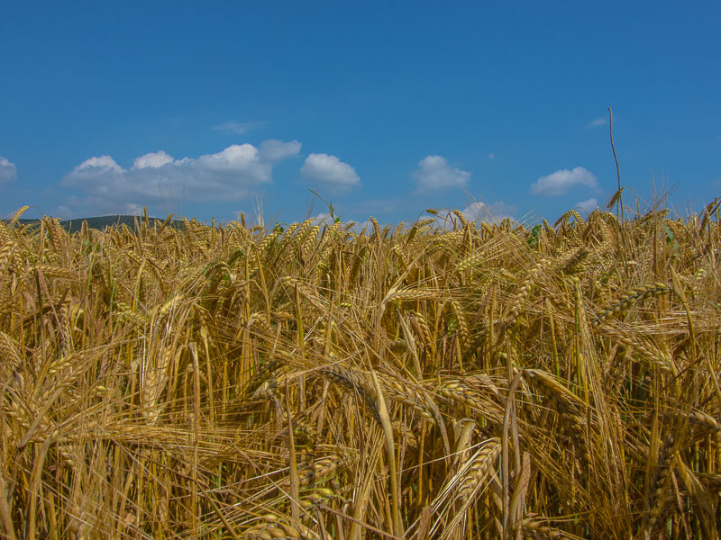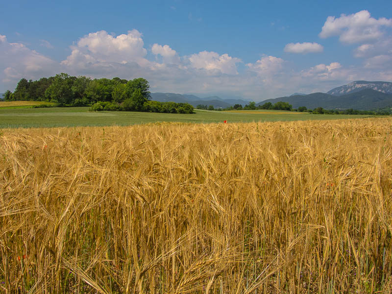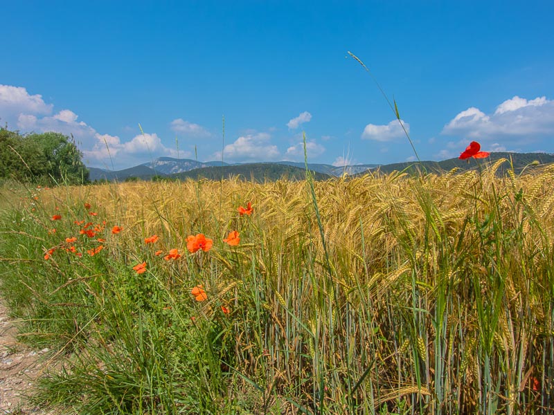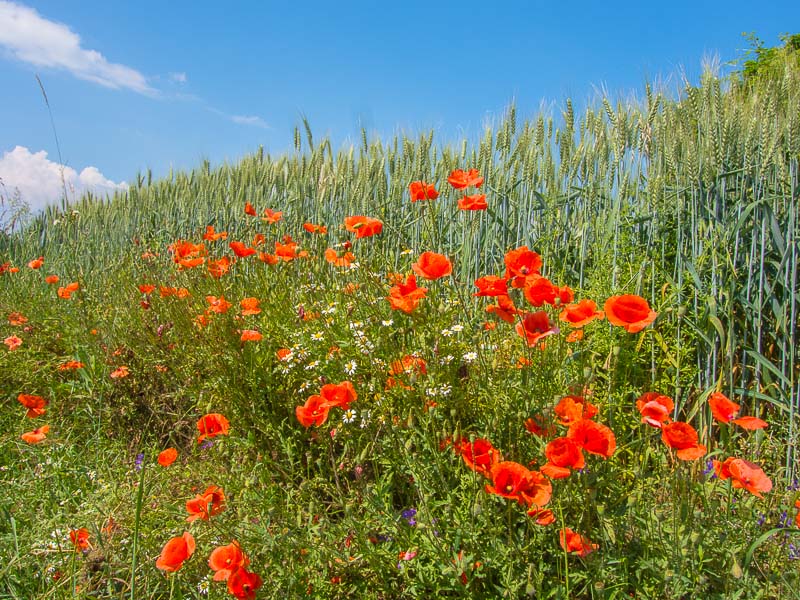 Poppies with Mohn with (summer-?) wheat, still being green.
